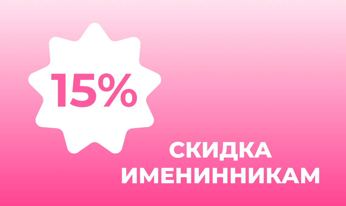 Скидка предоставляется именинникам в размере 15% на всё, кроме ЖЦ и 25% на парфюм*